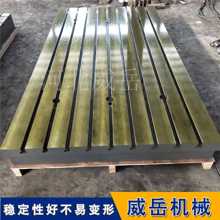 或200mm的倍數(shù)。這種標(biāo)準(zhǔn)化設(shè)計(jì)使得平臺(tái)能與各類螺栓、壓板、角鐵等夾具快匹配。平臺(tái)材質(zhì)多選用HT250灰鑄鐵或Q235鋼結(jié)構(gòu),經(jīng)過時(shí)效處理除內(nèi)應(yīng)力,配合刮研工藝保證平面度誤差控制在0.02mm/m²以內(nèi),高精度平臺(tái)甚至達(dá)到0.005mm/m²的微米級(jí)精度。槽內(nèi)鑲嵌的耐磨合金鋼條進(jìn)一步延長了使用壽命,而平臺(tái)側(cè)邊的刻度標(biāo)尺和基準(zhǔn)孔則為工件定提供了直觀參考。現(xiàn)代T型槽平臺(tái)還衍生出帶液壓夾緊系統(tǒng)、氣動(dòng)鎖緊裝置的智能變種,通過控制系統(tǒng)實(shí)現(xiàn)夾具的快切換,大幅縮短工裝準(zhǔn)備時(shí)間。例如汽車生產(chǎn)線采用的模塊化T型槽系統(tǒng),可在10分鐘內(nèi)完成夾具重組,適應(yīng)不同型號(hào)零件的加工需求。