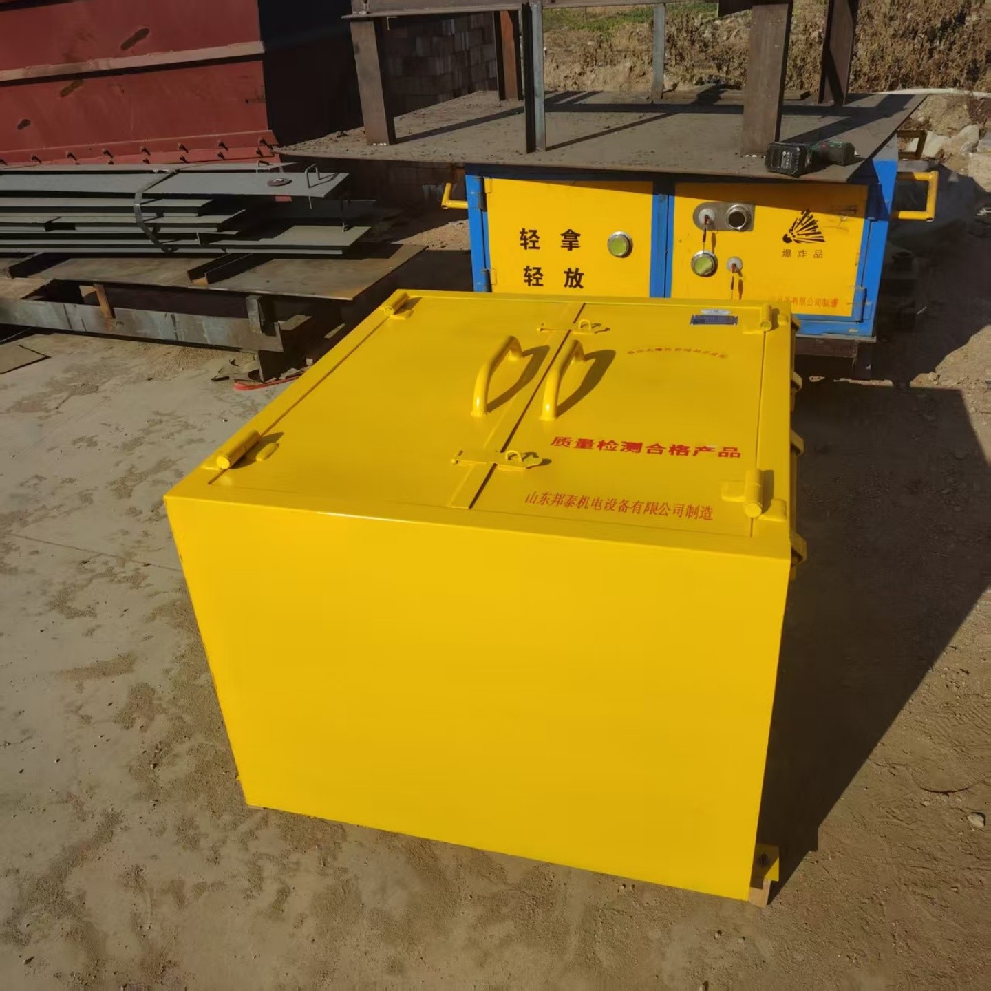車廂部分:通常采用 6-8mm 厚的防爆鋼板制成,具有高強(qiáng)度和抗沖擊性能,能有效防止爆炸沖擊波和碎片的擴(kuò)散。內(nèi)部鋪設(shè) 10mm 厚的絕緣木板及 2mm 厚的防火防震防靜 電的阻燃?jí)|,可起到緩沖、隔熱、防靜電的作用,確保爆破物品的安全存放。